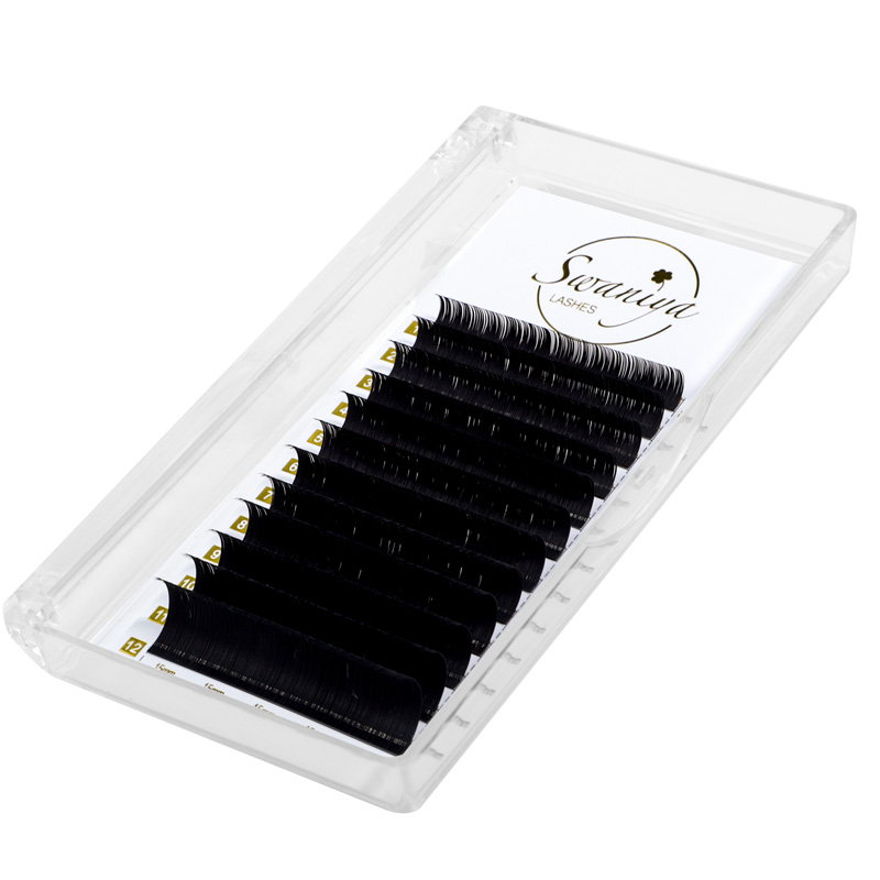 Swaniya Classic Lash Extensions ir matēta melna krāsa bez zilas nokrāsas, kas padara tos ideālus klasisko skropstu komplektu izveidošanai. Dziļi melna krāsa palīdz akcentēt acu dabisko skaistumu, padarot tās lielākas, gaišākas un pievilcīgākas.